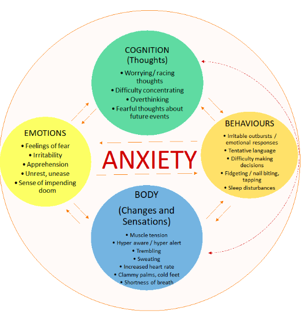 Fig 1: Understanding Anxiety and its impact. (This is a representation and may not encompass all possible symptoms or experiences associated with anxiety. Individual experiences of anxiety can vary, and it’s important to consult with a mental health professional for accurate diagnosis and personalized treatment.)